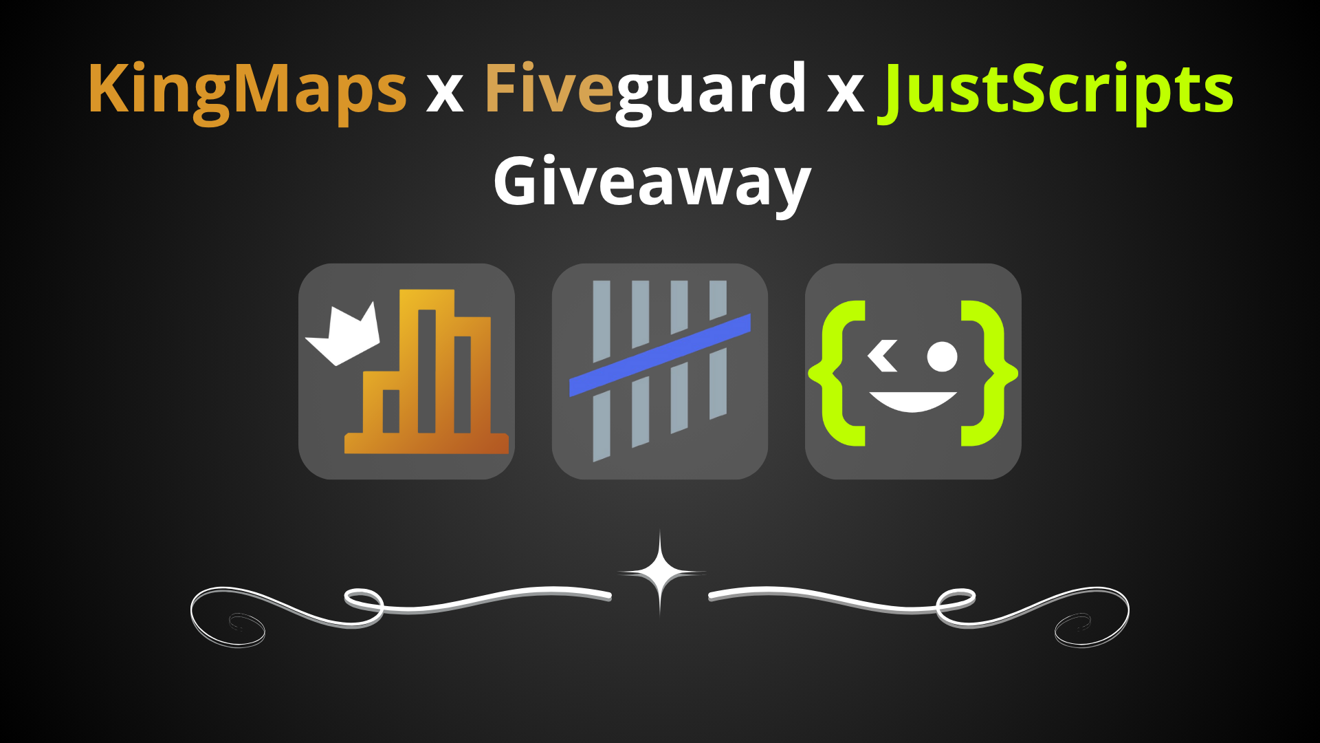 The teams at Fiveguard, Kingmaps, and Justscripts have joined forces for an unprecedented giveaway event! We are giving one lucky winner the ultimate FiveM server owner's package, with LIFETIME ACCESS to products from all three stores.