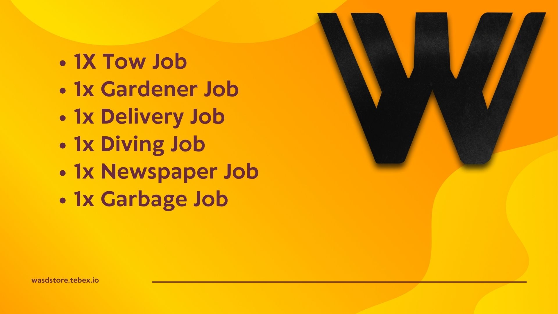 1X Tow Job 1x Gardener Job 1x Delivery Job 1x Diving Job 1x Newspaper Job 1x Garbage Job